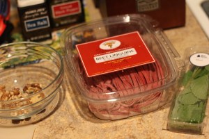 Fresh Beet Linguini with Goat Cheese, Swiss Chard and Toasted Walnuts: A Blue Apron Review