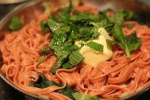 Fresh Beet Linguini with Goat Cheese, Swiss Chard and Toasted Walnuts: A Blue Apron Review